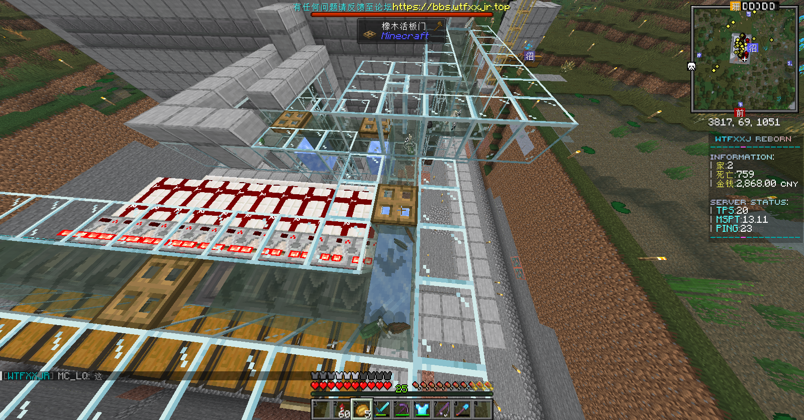 guew me too 我的发展进度仅仅为全套钻石装备,钻石工具全部顶级附魔仅此而已,就一个空中农田以外没有任何机器